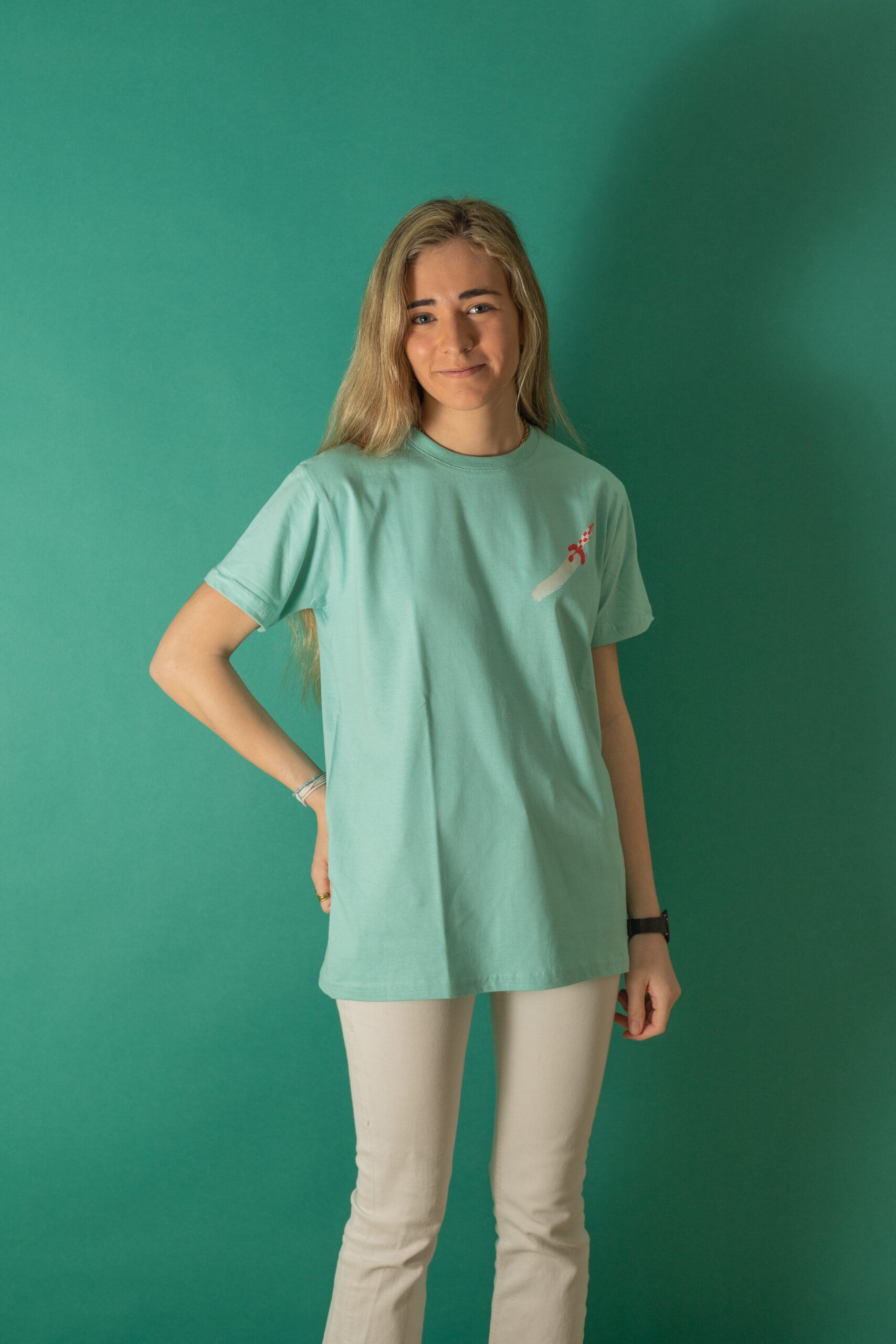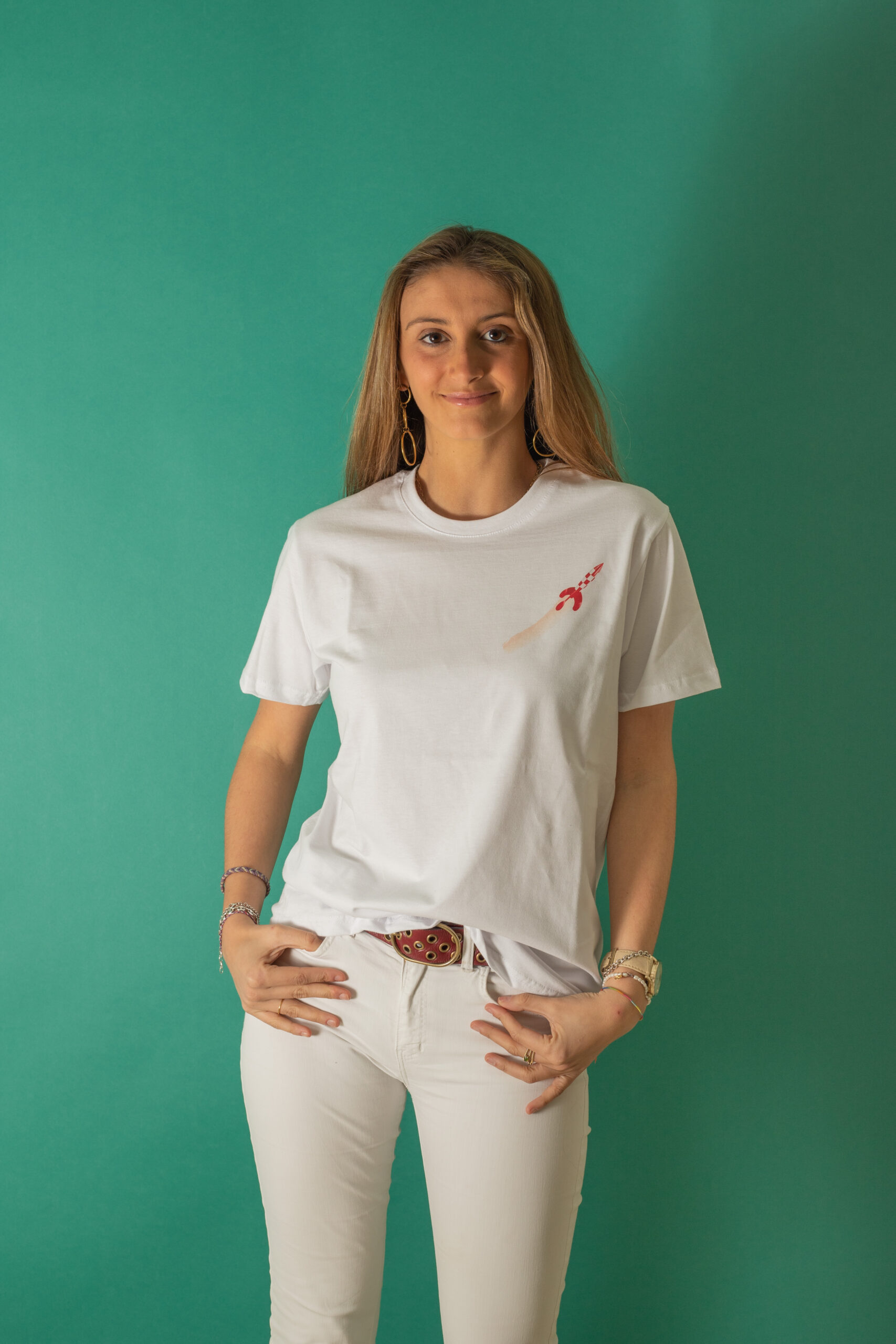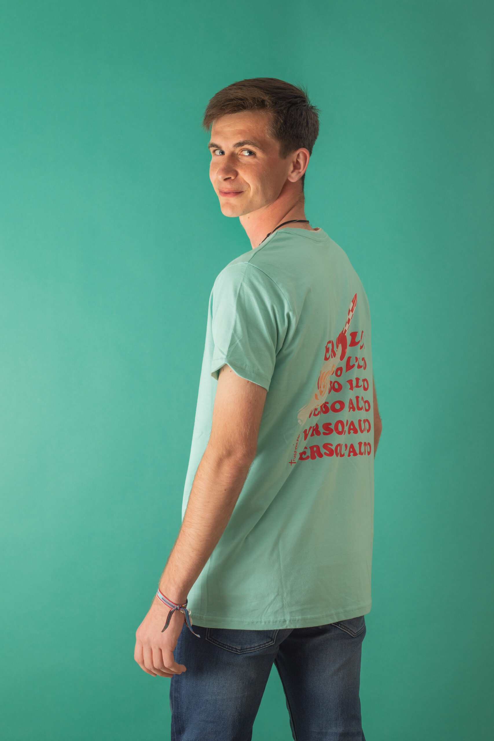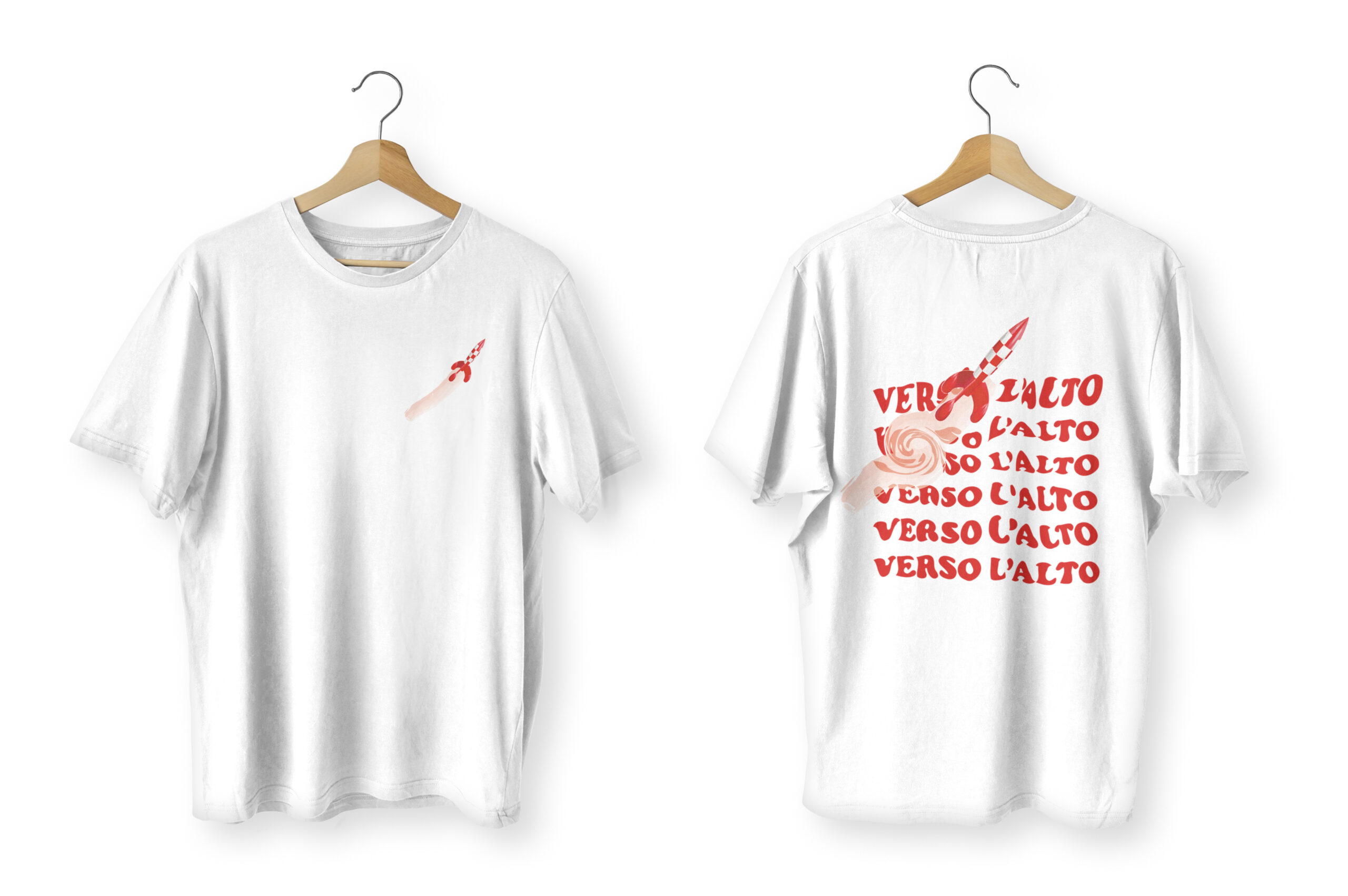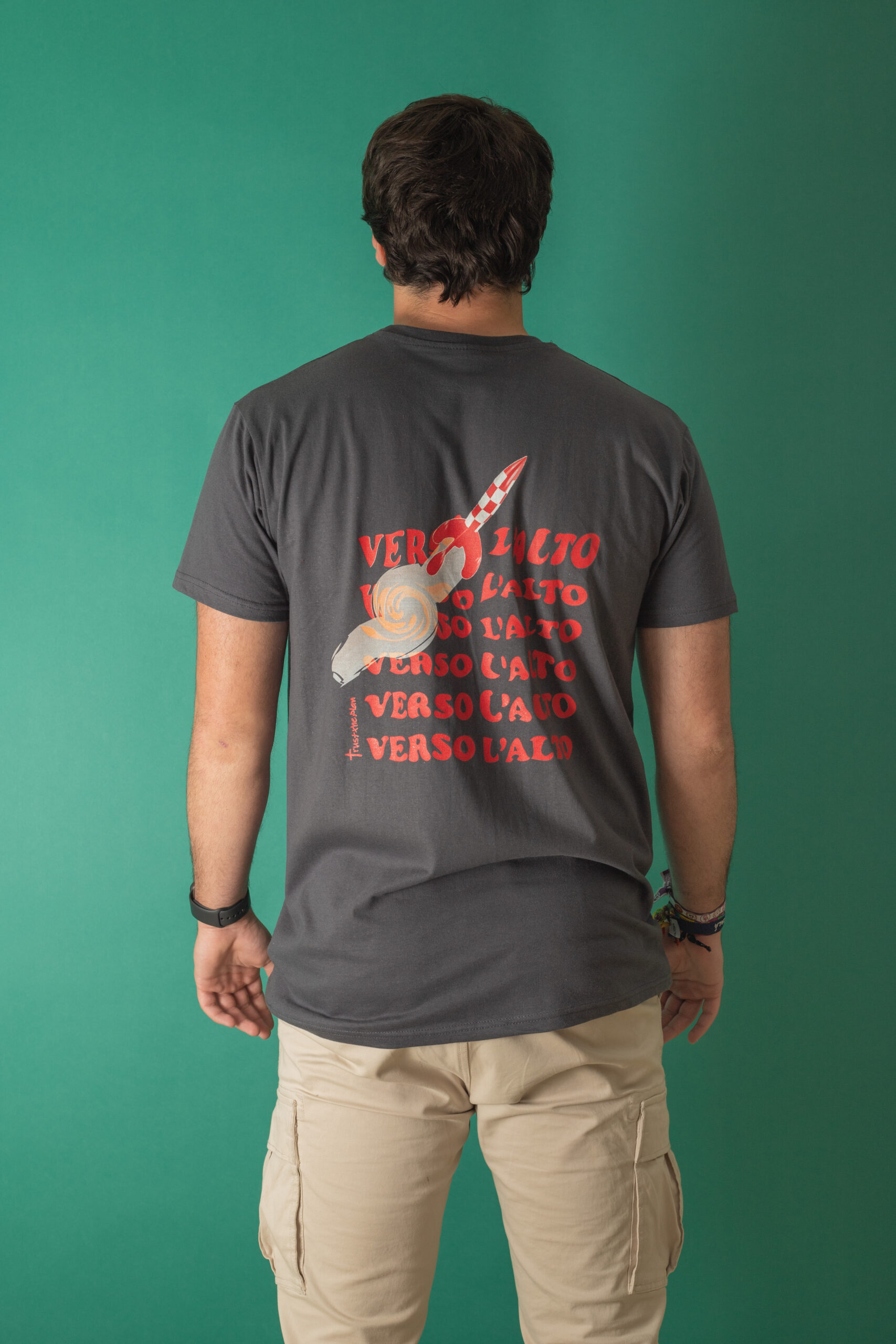 Pier Giorgio Frassati, joven católico italiano, solía repetir mucho esta frase: ¡Verso l´alto! ¡Hacia lo alto! Su vida es un ejemplo para todos nosotros pues vivió santamente entre su pasión por la montaña y su empeño por ayudar a los más desfavorecidos. Por las calles de Turín no había pobre que no lo conociera, que no le debiera algún favor. Y Pier Giorgio llevó su bondad hasta el extremo, hasta morir contagiado de lepra. Con alegría pronto entendió que el Señor le llamaba a algo grande y hoy es un gran beato de la Iglesia. Esta camiseta nos anima a dirigir la mirada hacia el cielo, a perseguir grandes ideales, a llevar almas de joven a Cristo. Por todo ello queremos destinar todos los beneficios recaudados de esta camiseta a la Asociación Sol, que desde Argentina ayuda a los más jóvenes a luchar por sus ideales, a dar respuesta a esa llamada de Jesús a cada uno de ellos. Esta asociación ha creado el campamento Vírgen de la Luz en Argentina y con lo recaudado ayudaremos a que muchos niños y jóvenes conozcan la alegría de ser cristianos.