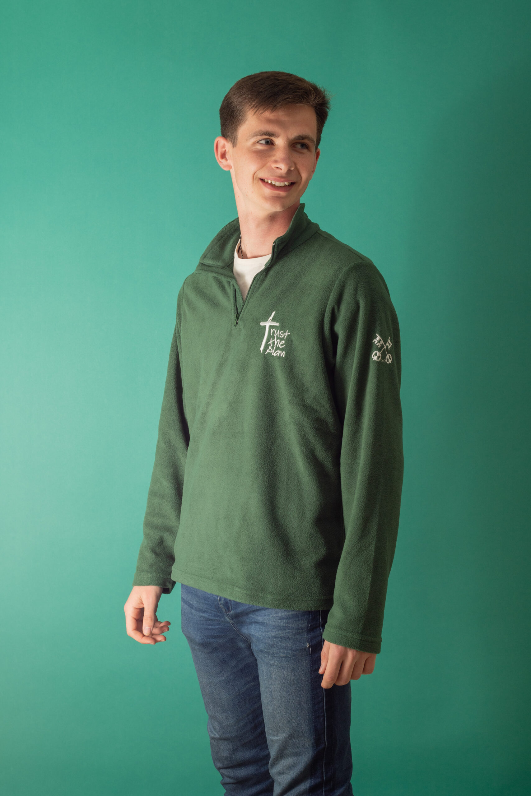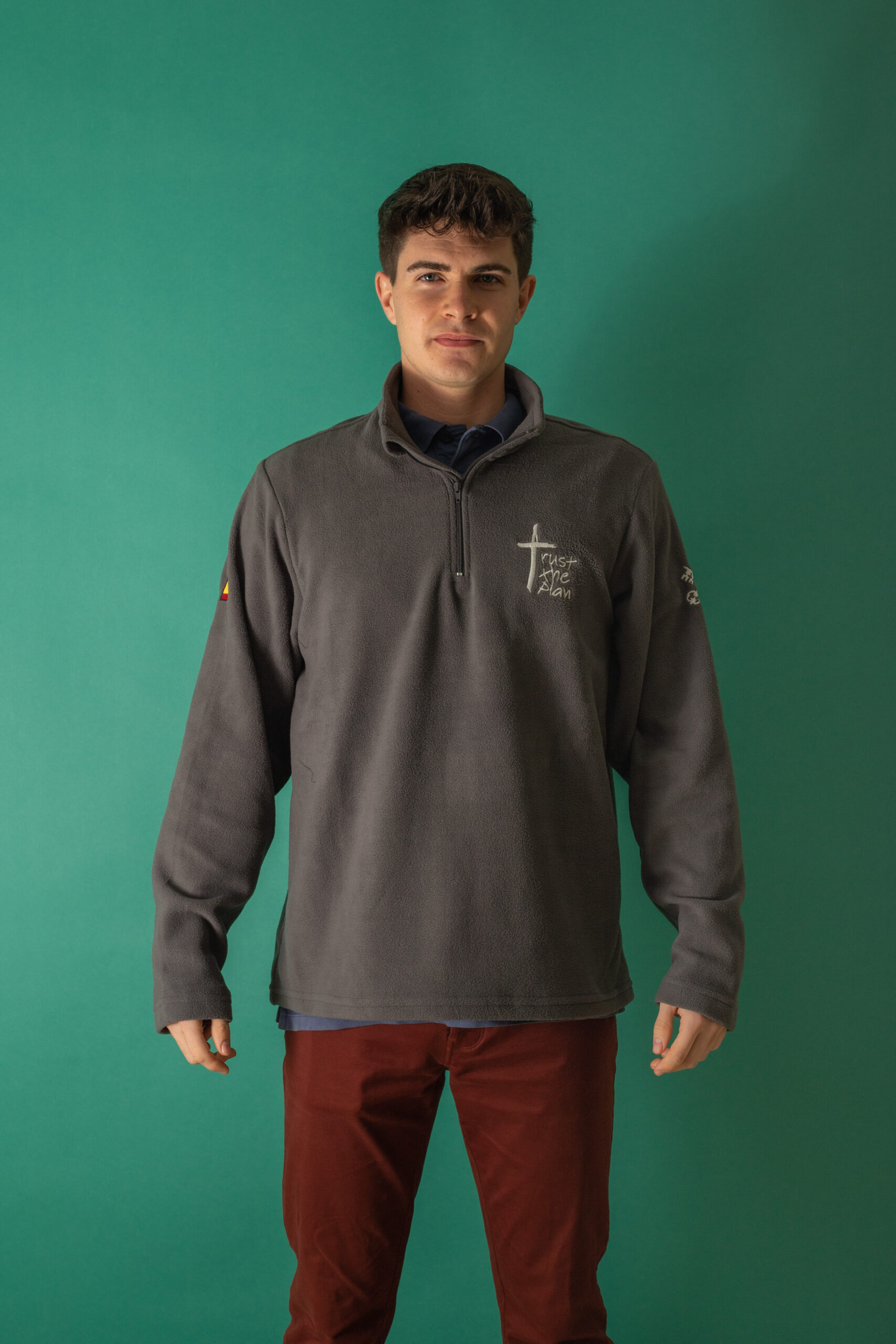 Aunque parezca quizás el producto más sencillo de nuestra colección, en él queremos reflejar las tres líneas fundamentales de este proyecto solidario. El primero, a través de la bandera de España, nuestro amor por nuestro país, que tantos santos ha dado a la historia de la Iglesia. Un país que, como escribió Menéndez Pelayo, ha sido, “evangelizador de la mitad del orbe; España fue martillo de herejes, luz de Trento, espada de Roma, cuna de San Ignacio...; ésa es nuestra grandeza y nuestra unidad; no tenemos otra”. Además, con las llaves de San Pedro queremos reivindicar nuestro amor por la Iglesia y por el Papa, al que seguimos con cariño y lealtad filial. Y, por último, este forro polar recoge la breve frase que da nombre a este proyecto: Trust the Plan. Ponemos nuestra iniciativa solidaria y nuestra vida entera en manos de Dios. Confiamos en Su plan, porque si Dios con nosotros, ¿quién contra nosotros?